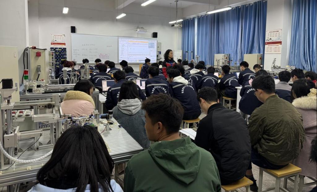 4月3日,新教师们观摩了智能制造与汽车工程学院教师周丽娜的《pcl控制技术——连续控制多个信号灯》示范课。周丽娜以智能制造生产线为教学载体,融入企业岗位能力需求,遵循学生技能达成的规律,通过“问题导入、原理剖析、仿真演示、实践操作”等四步诠释了连续控制多个信号灯编程的操作要领、工程实践价值。课堂上,周丽娜巧妙运用仿真软件、工作任务单、省级规划教材——活页式教材等教学资源,充分调动学生学习兴趣和自主性,充分体现课程理论与实践相结合。