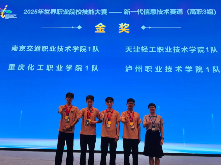 9月8日至12日,2025年世界职业院校技能大赛总决赛争夺赛 “新一代信息技术赛道(高职组)” 在江苏常州举行。我校人工智能与大数据学院学生李言、邱韵伦、边锦吉、刘宗鑫,在指导教师陈玲、夏汛带领下,与全国28个省(区、市)及7个国家的251支队伍、1000余名选手竞技,最终斩获我校本届赛事首枚金奖,实现学校在该赛事金奖荣誉的历史性突破。