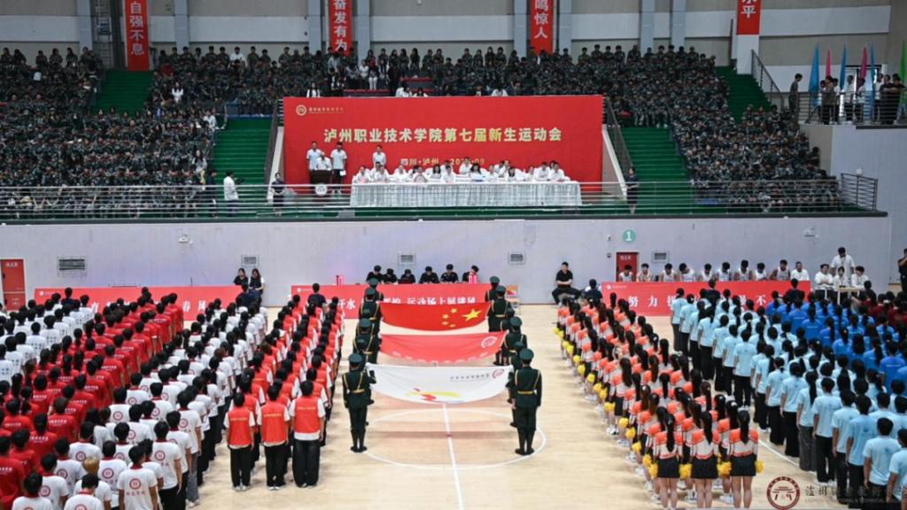 伴随着激昂的运动员进行曲,国旗护卫队、裁判方队、表演方队、运动员方队精神抖擞、昂首阔步依次入场,充分展现了泸职学子团结拼搏、斗志昂扬精神风貌。