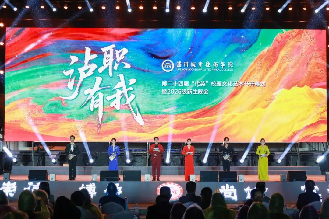10月24日晚,泸州职业技术学院第二十四届“代英”校园文化艺术节开幕式暨2025级新生晚会在东华校区足球场举行光影璀璨交织,现场掌声如潮。