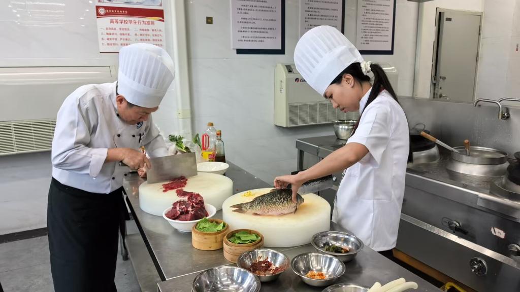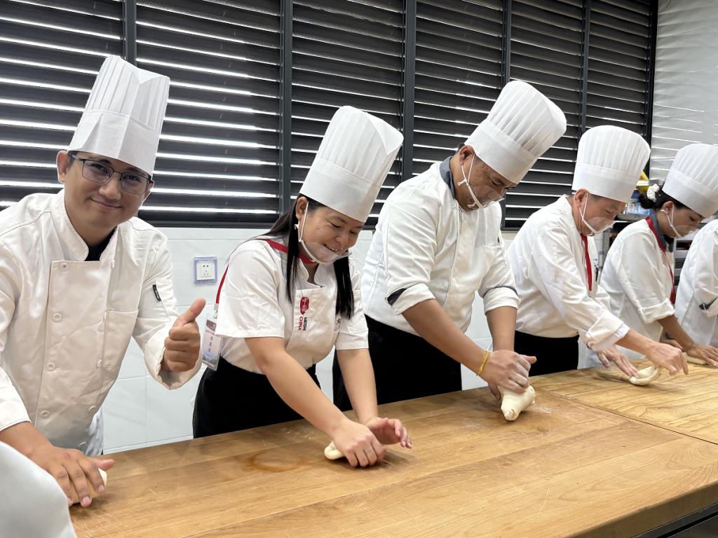 面点培训时,他们从和面、揉面至成型,逐步将理论转化为实操技能,熟练驾驭中国面点制作工艺。川菜培训时,他们精准把控火候、调味等烹饪要诀,制作出色香味俱全的佳肴。
